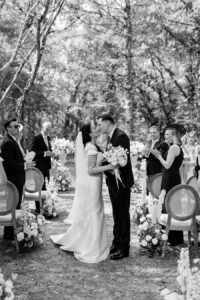– Reception Flowers: Decide between long tables or round tables, as each influences your floral choices. Long tables allow for extended floral runners, creating a continuous visual impact, while round tables enable you to create stunning centerpieces that can vary across tables.